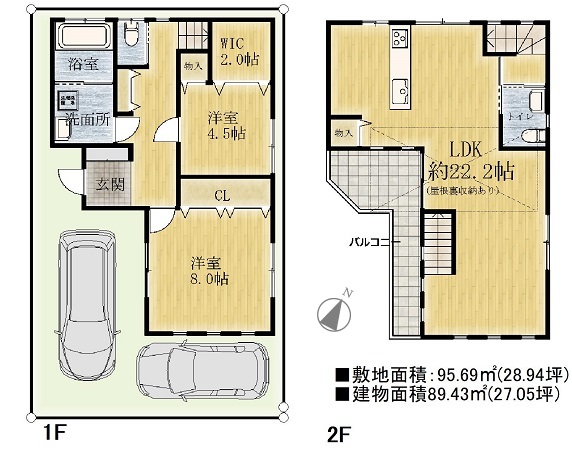 【 一戸建て 】鶴瀬駅徒歩23分★明るいリビングは広々約22帖★お洒落な外観★ららぽーと富士見まで徒歩13分★カースペース2台分◎