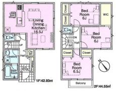 | 設備 | 公営水道 公共下水 東京電力 都市ガス 防犯カメラ バルコニー 人感センサー玄関灯 TVモニター付インターホン システムキッチン カウンターキッチン パントリー(1号棟のみ) 給湯 ユニットバス 浴室乾燥機 シャワー付洗面化粧台 温水洗浄便座 トイレ2箇所 各室クローゼット ウォークインクローゼット(2号棟のみ) 床下収納 室内洗濯機置場 フローリング 全居室ペアガラス |
