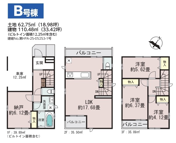 【B号棟】土地:62.75㎡・建物:110.48㎡